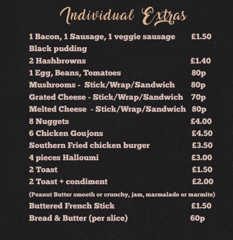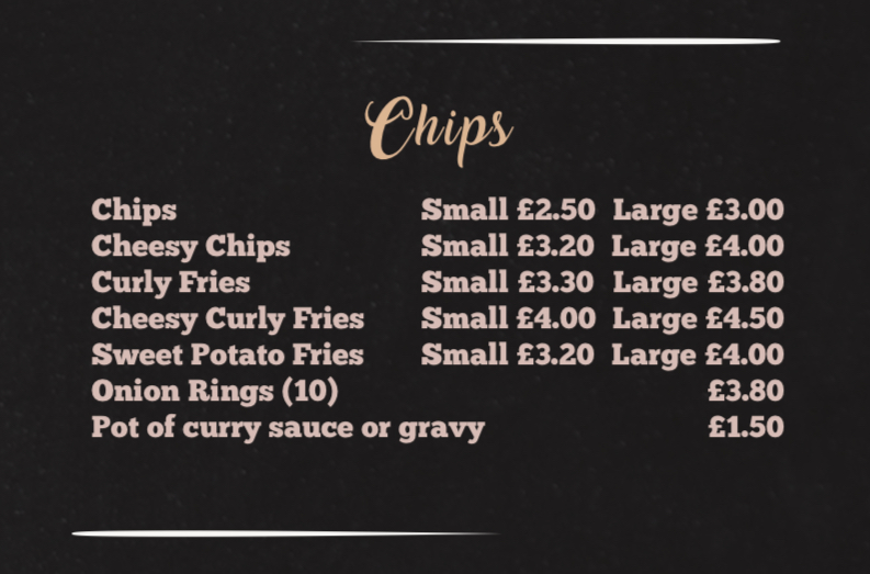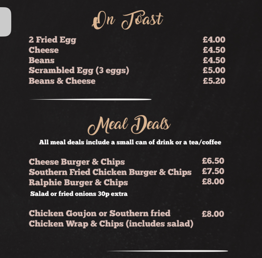 The sides are equally impressive. Picture crispy, golden Chips for only £2.50 or the indulgence of Cheesy Curly Fries at £4.00. Whether you're coming in for breakfast, lunch, or a mid-afternoon snack, the food is always served hot and with a smile, just as the steps of their kitchen demand.